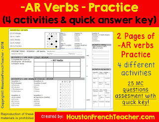 *Spanish -AR verbs Practice – Diverse Activities worksheet with Quick Answer Key