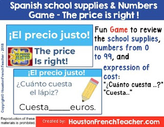 * Material escolar Spanish School Supplies, Numbers – The price is right Game
