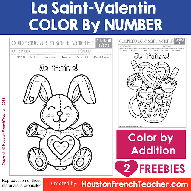 This product contains 2 Valentine’s Day (Saint Valentin) coloring activity by reviewing the numbers in French from 0 to 20.