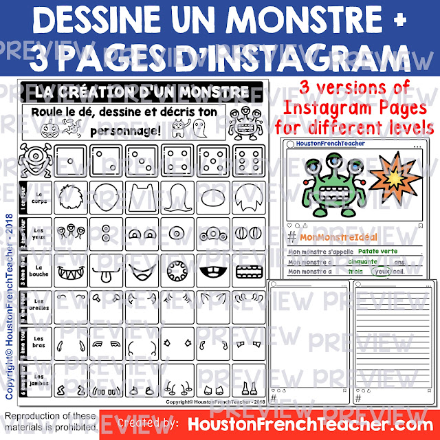 Looking for a fun activity to practice the French body parts? This activity is also perfect for Halloween season. Students will have so much fun in drawing, coloring and writing about their monsters. On top of that, they will be able to post their amazing work on an Instagram template like (3 different versions for different levels).