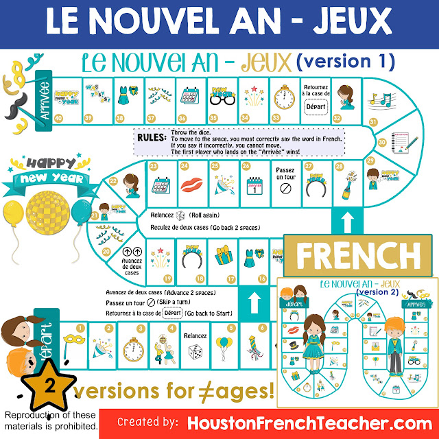 Here is the link to all French New year – (Nouvelle Annee) – resources on the HoustonFrenchTeacher TPT Store.
