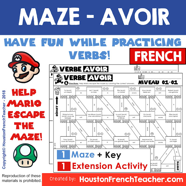 Reinforcing French grammar can be challenging at times, so I always try to make my activities as fun, interactive, game-like and visually appealing for my students. Grammar is the least favorite part for middle schoolers, so I had to get creative and luckily they really enjoy this activity and want to help Mario escape the maze!