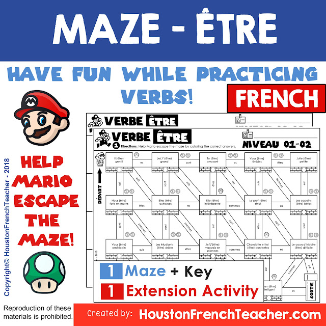 Reinforcing French grammar can be challenging at times, so I always try to make my activities as fun, interactive, game-like and visually appealing for my students. Grammar is the least favorite part for middle schoolers, so I had to get creative and luckily they really enjoy this activity and want to help Mario escape the maze!
